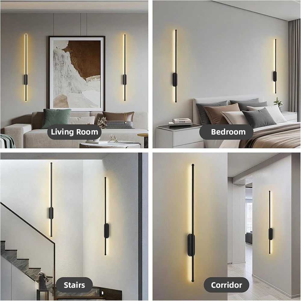 This modern LED strip wall lamp adds style and subtle lighting to any room.