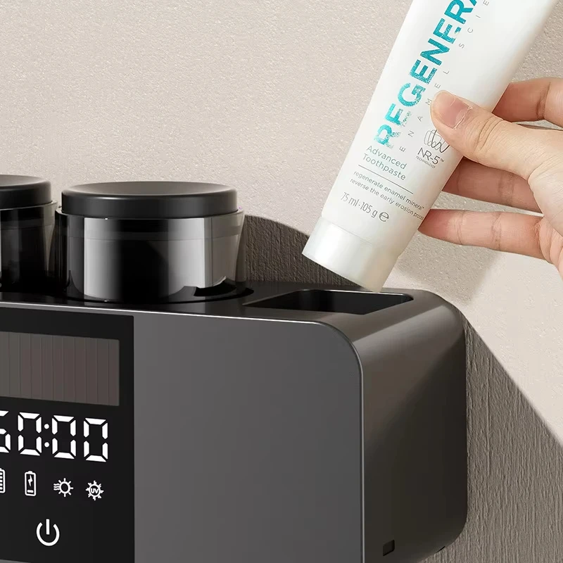 This wireless wall-mounted toothbrush sterilizer helps maintain better oral hygiene.